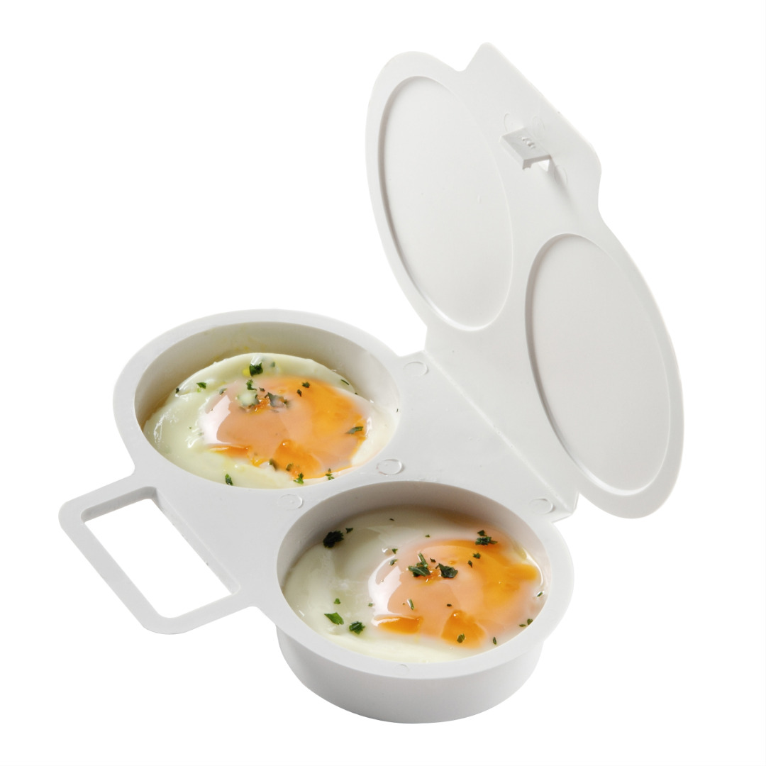 Mini valigetta in polipropilene con 2 scomparti per la cottura di uova in camicia.