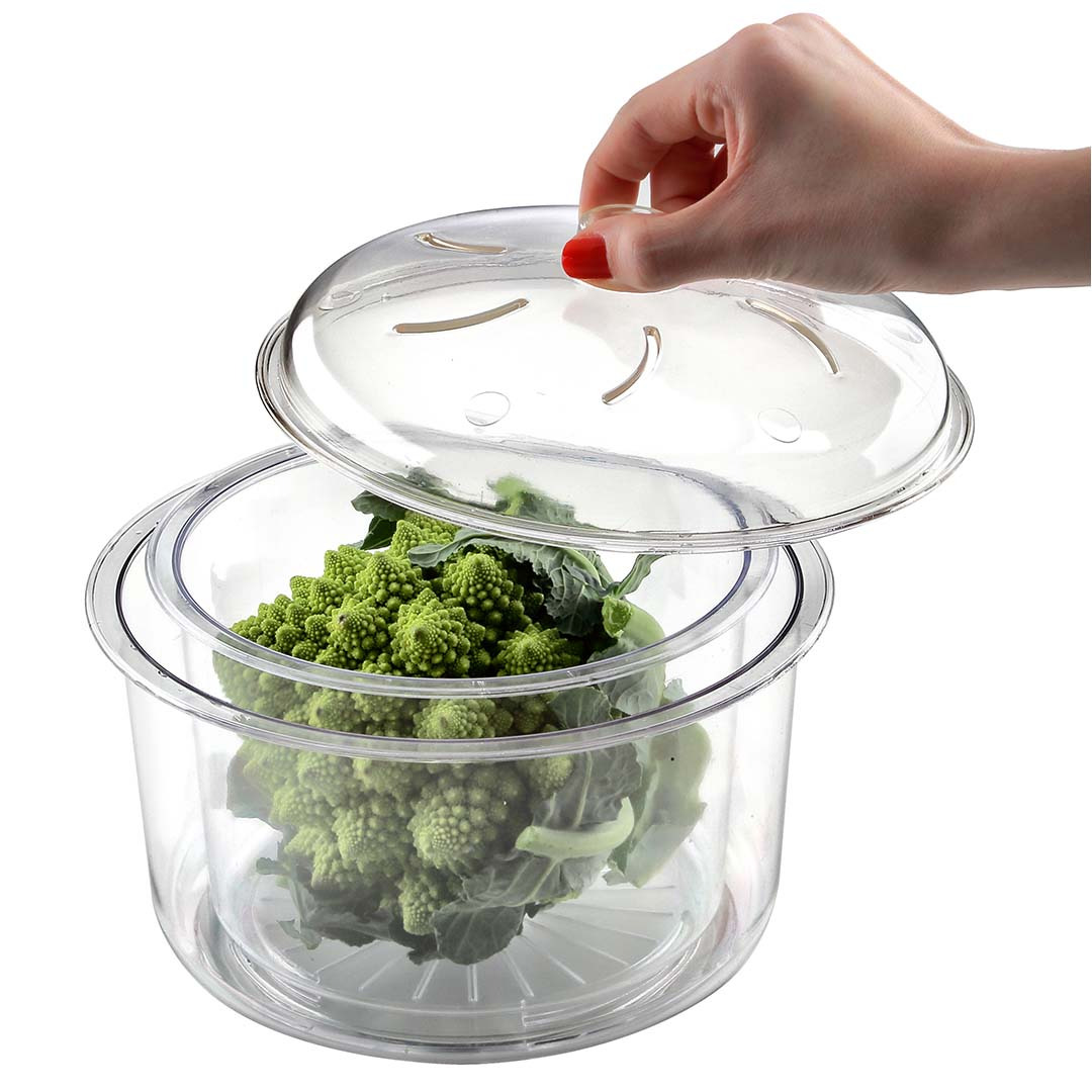 1 casseruola, 1 cestello interno e 1 coperchio con fori.